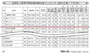 「経審による全国優良経営仕上げ工事専門業者 経営健全度ランキング」